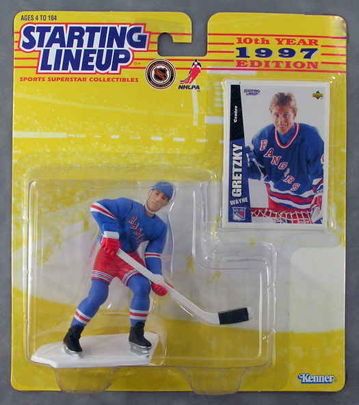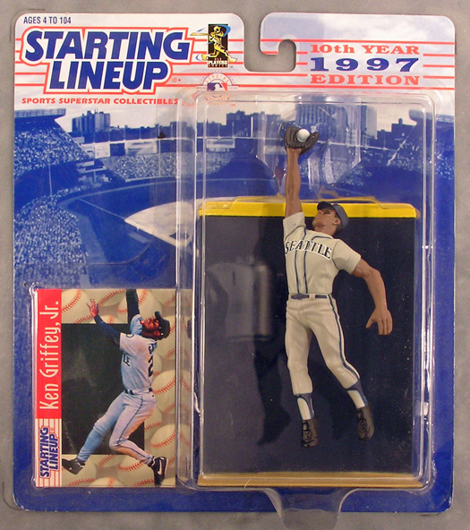 Starting Lineups, or SLUs, were a line of collectible sports action figures and cards, manufactured from 1998 to 2001, with a short lived revival in 2022. Each figure was typically accompanied by a collectible trading card. Originally envisioned as a line of toys for children, these figures became one of the hottest collectibles of the 1990s, spawning an entire industry of collectible sports figures that still exists today. The line featured athletes from the big four sports, MLB, NHL, NFL and NBA, as well as other sports, such as Nascar, Golf and iconic Olympic personalities.